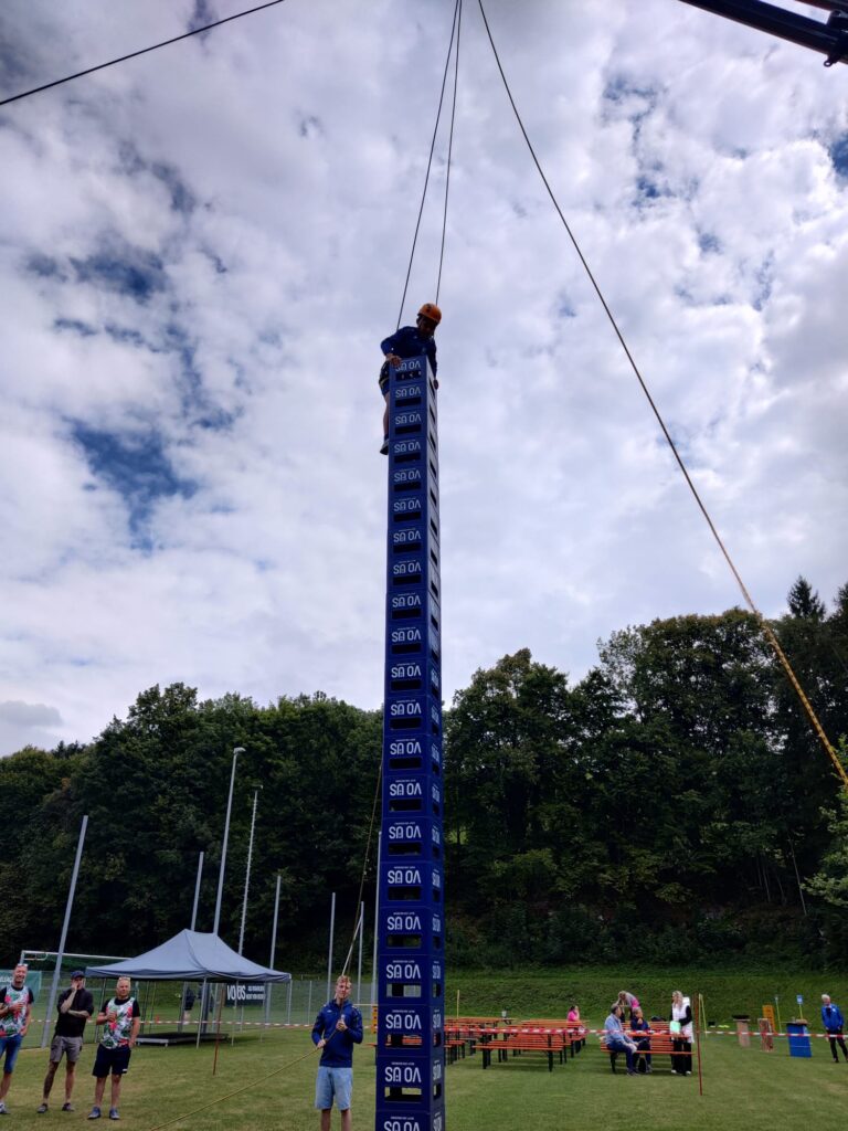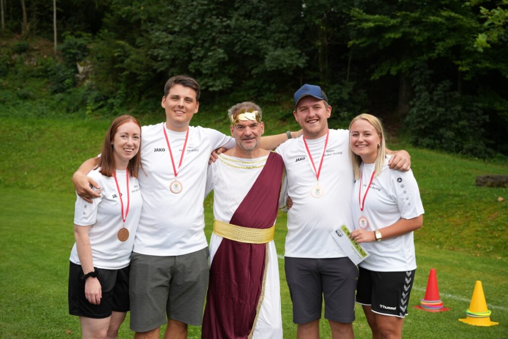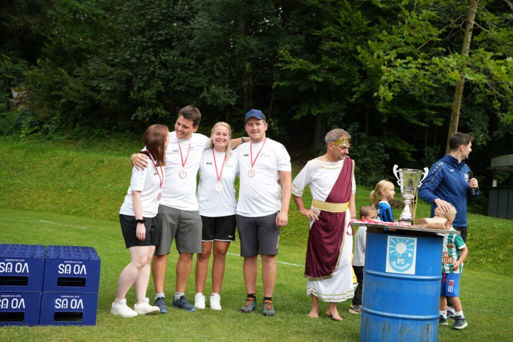 Ein spannendes Kapitel schrieb auch das Team Die Siegertypen: lange Zeit führten sie das Leaderboard an, doch ausgerechnet in den Disziplinen Bierkistenklettern und Wasser verschieben erwischten sie nur einen mittelmäßigen Tag. Dadurch rutschten sie knapp an den Medaillenrängen vorbei und landeten auf einem starken, aber etwas unglücklichen 4. Platz.