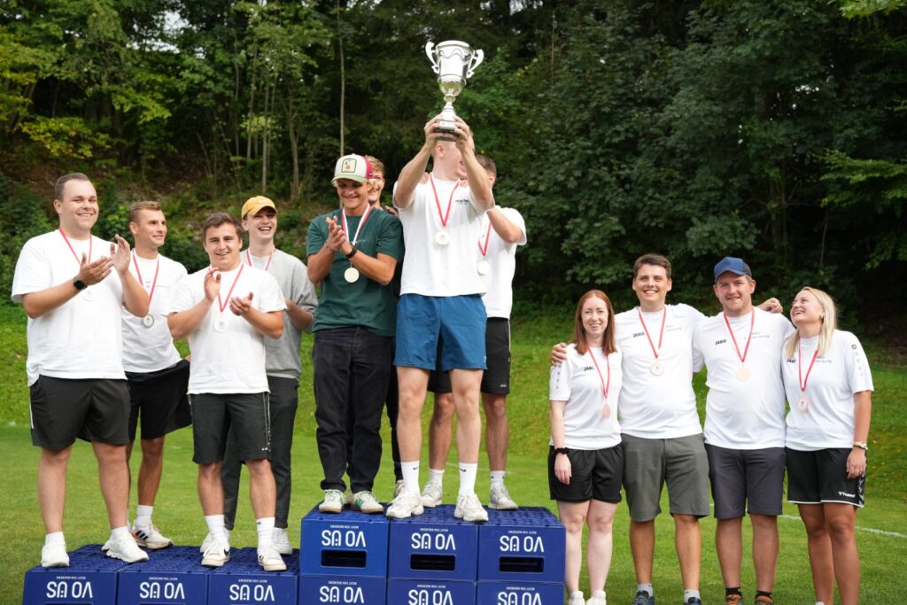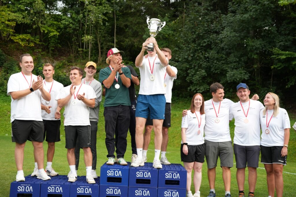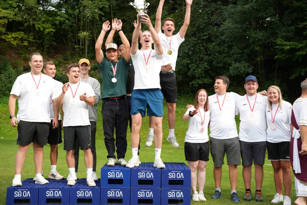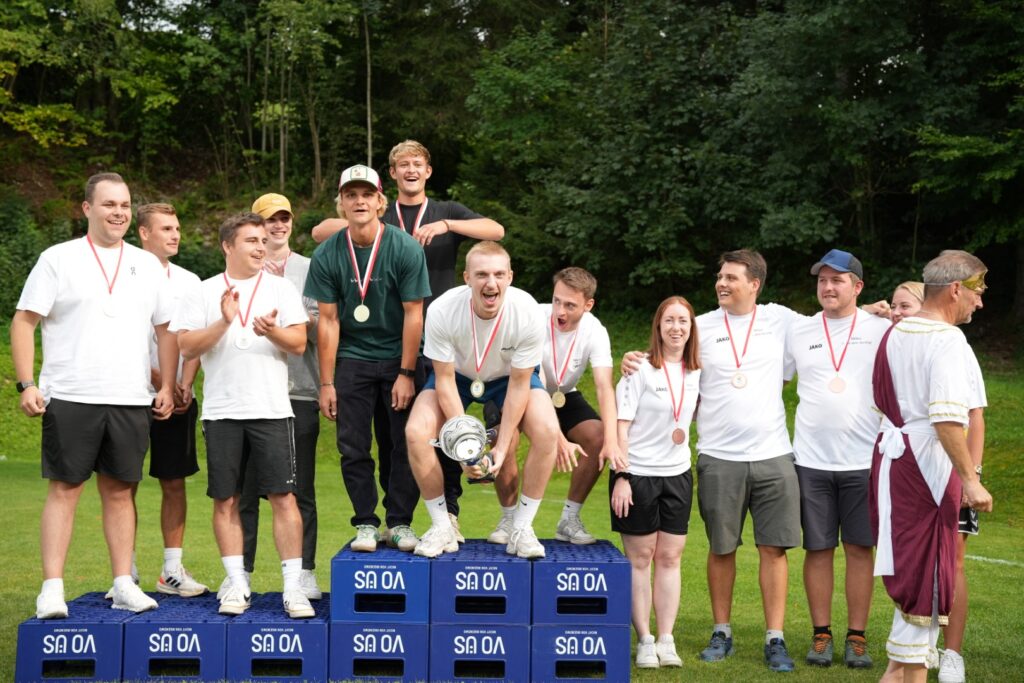 Was für ein Wettkampftag! Insgesamt 16 Teams stellten sich in 10 Spielen den Herausforderungen – von Bierkistenklettern über Fußball-Curling bis hin zum berüchtigten Wasser-Verschieben.