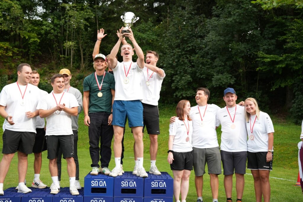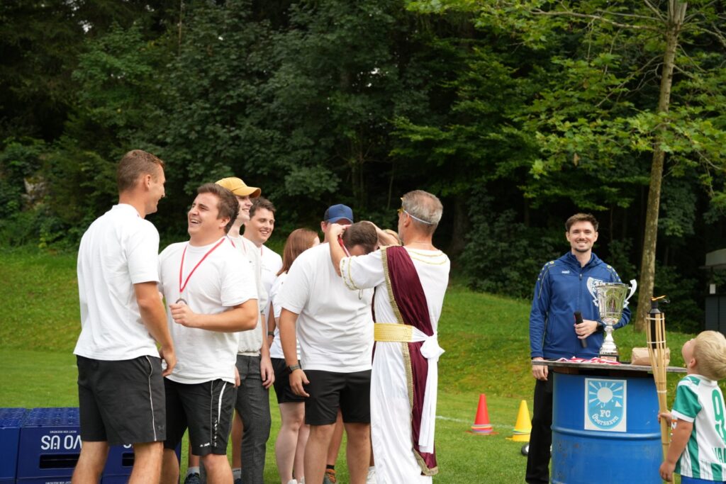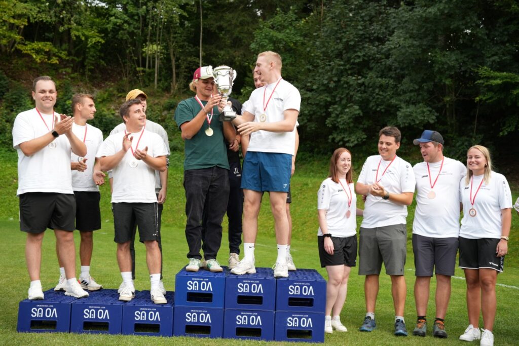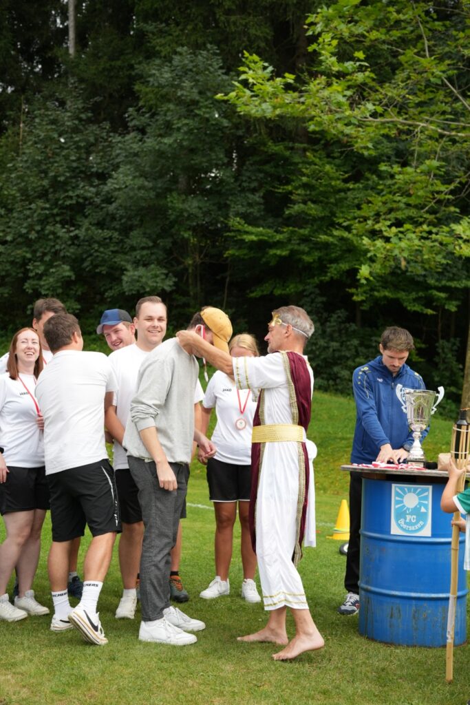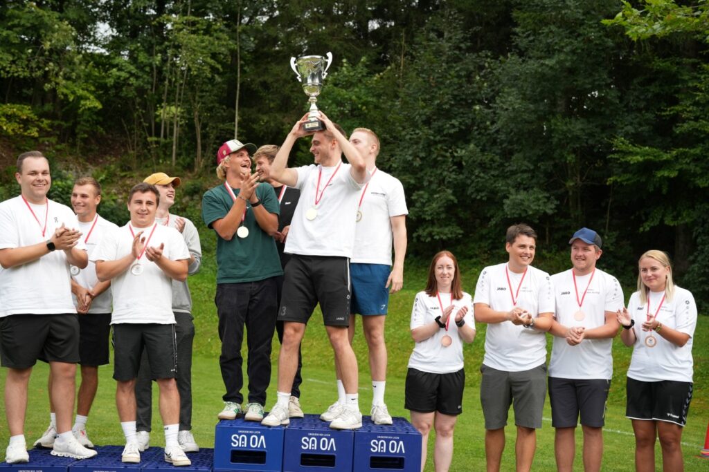 Was für ein Wettkampftag! Insgesamt 16 Teams stellten sich in 10 Spielen den Herausforderungen – von Bierkistenklettern über Fußball-Curling bis hin zum berüchtigten Wasser-Verschieben.